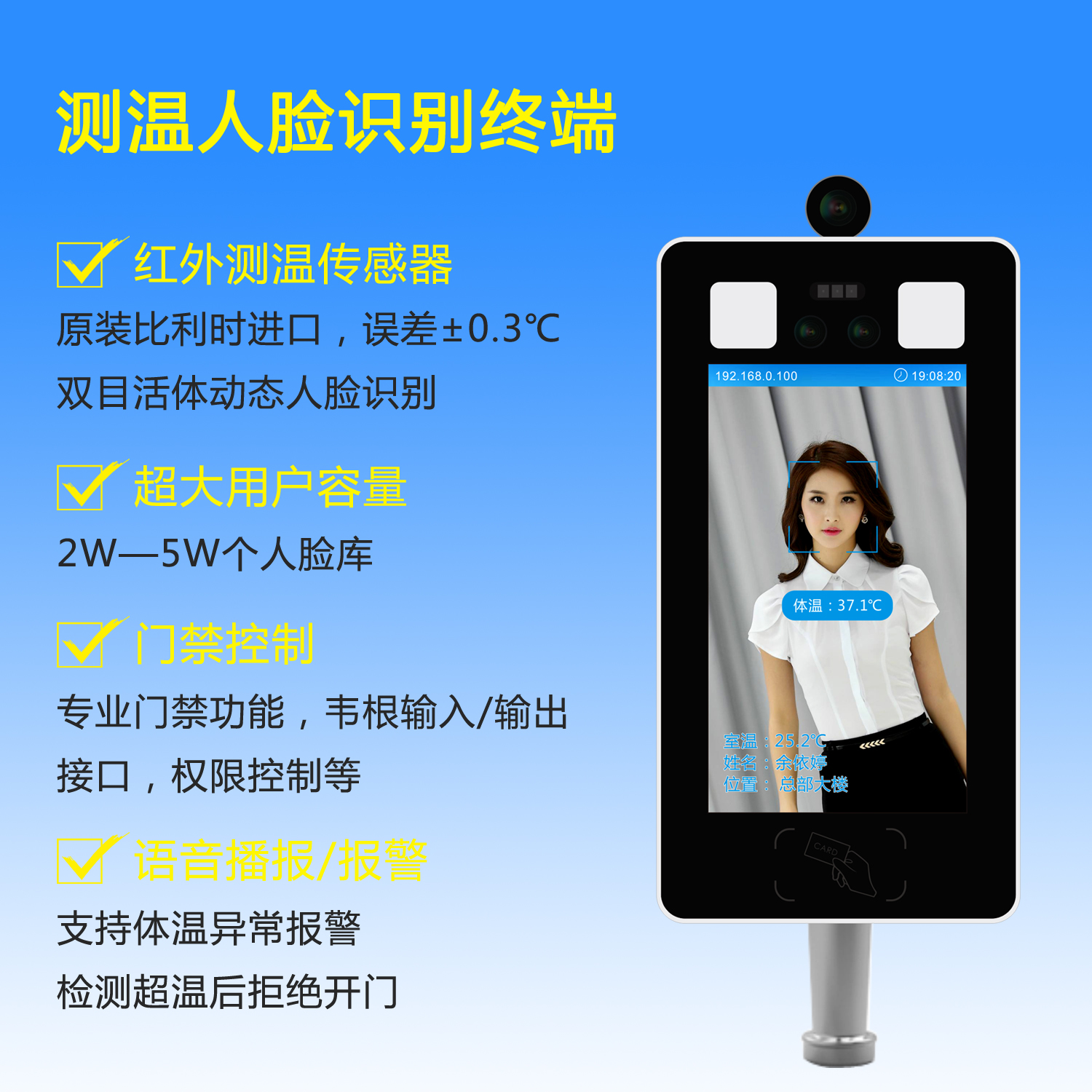 体温检测+人脸识别终端
